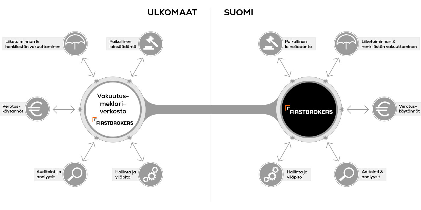 Kauttamme hoituvat kaikki vakuutustuotteet ja -palvelut Suomessa ja ympäri maailmaa, yli 110 maassa. Jos tarvitsette paikallista lakisääteistä tai vapaaehtoista vakuutusturvaa tai kansainvälisiä vakuutuksia, voimme tarjota ratkaisut ja palvelut tukemaan ja turvaamaan liiketoimintaanne.